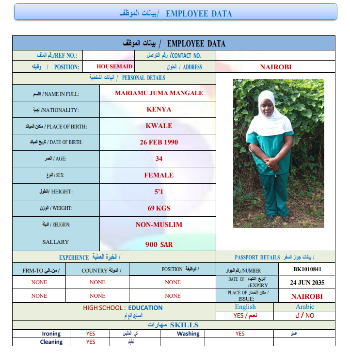 الاسم: MARIAMU JUMA MANGALE