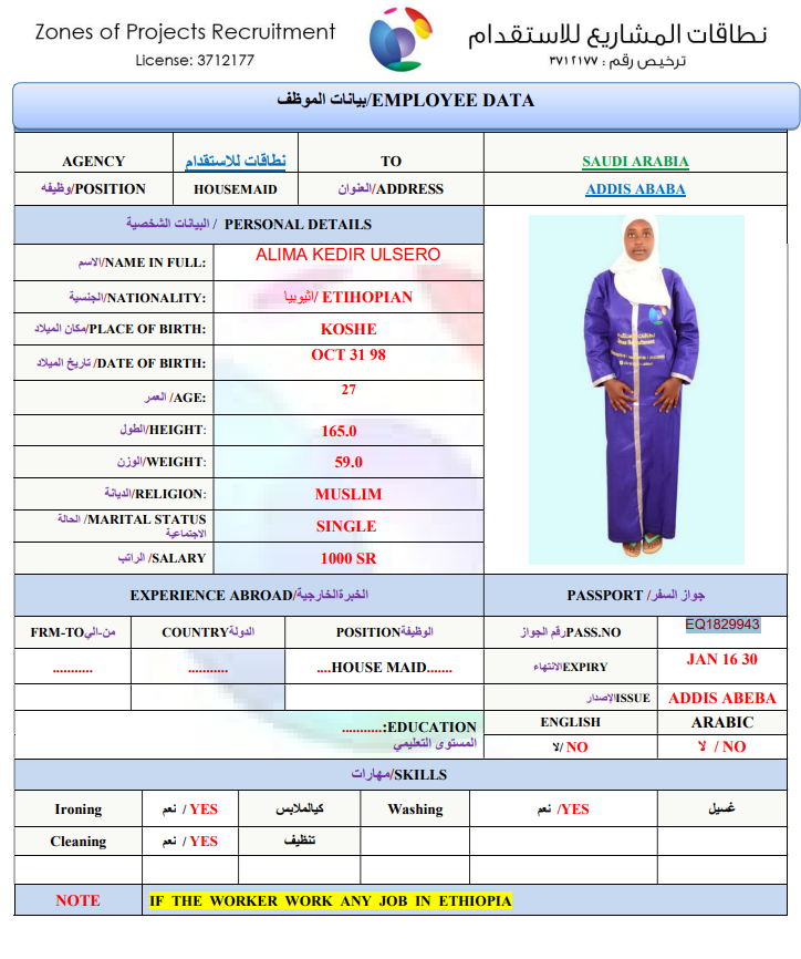 بيانات العاملة